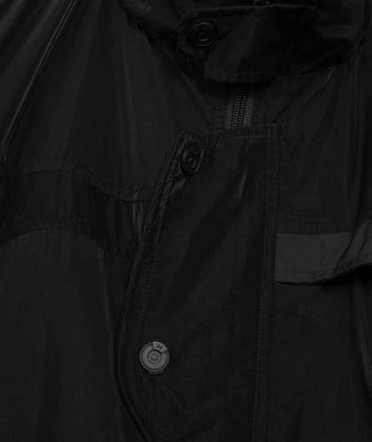 Chaqueta negra de chándal de la colección Coherence de C2H4. Luce una cremallera y un cierre a presión con imán asimétrico en la parte delantera y una etiqueta metálica con el logotipo grabado en la manga.
