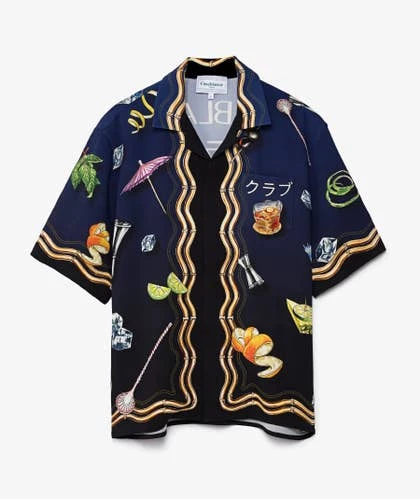 Esta camisa ligera luce estampados de distintos accesorios e ingredientes para cocktails en toda la superficie, un bolsillo de parche con los caracteres japoneses «クラブ» («Club») bordados y un cierre de botones ocultos. Una prenda refinada al más puro estilo de la marca parisina.