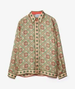 Camisa de manga larga confeccionada 100% con seda de alta calidad en Italia. Diseño estampado multicolor con monogramas de diamantes.