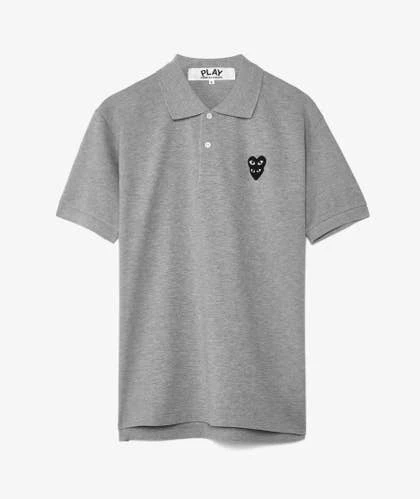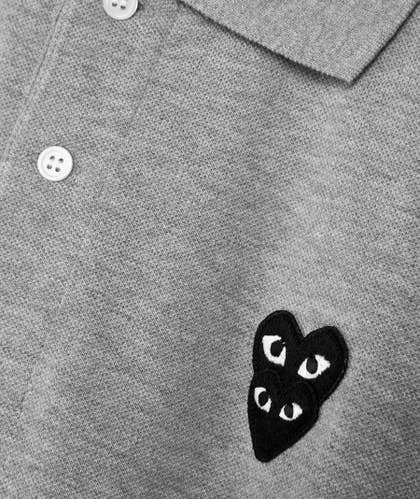 Este polo de Comme des Garçons está confeccionado con algodón prémium y tiene un parche de doble corazón de color negro en la parte del pecho.