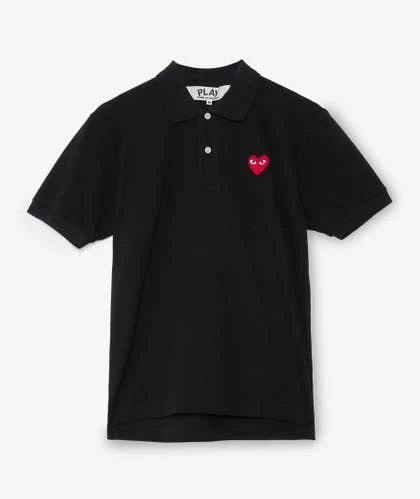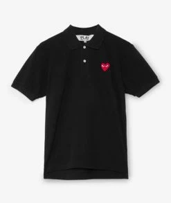 Polo negro de manga corta confeccionado en algodón de alta calidad con parche de Comme des Garçons Play bordado en el pecho.