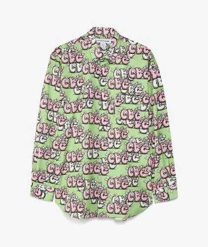 Camisa de algodón con estampado all-over de Comme des Gaçons Shirt x KAWS. Bolsillo en el pecho.