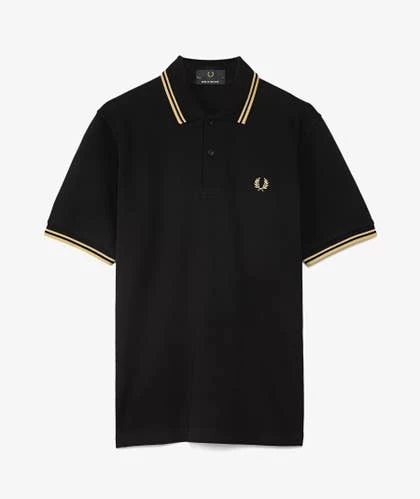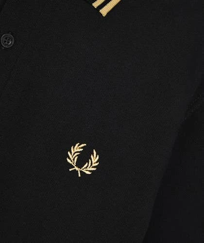 Polo negro de manga corta confeccionado con algodón de primera calidad. Cuenta con el cuello y los puños acanalados y decorados con dos rayas, cierre de dos botones y un pequeño logo de la marca bordado en el pecho, que se trata de la corona de laurel que el club All England Club de Wimbledon le concedió a Fred Perry tras ganar tres años consecutivos el torneo.