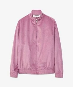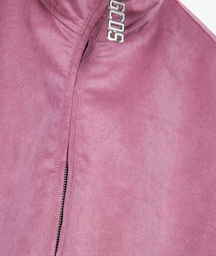 Chaqueta bomber en color rosa de acabado satinado de GCDS. Cuello elevado y cierre de cremallera con detalle de logo.