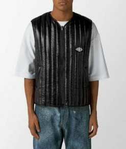 Chaleco acolchado de Hombre Niño de color negro, con cierre de cremallera y el logo de la marca en el pecho.