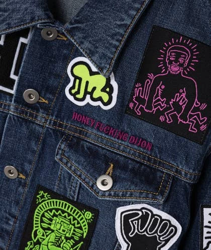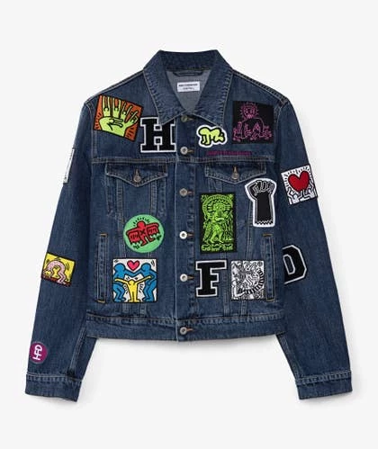 Lo hace con esta chaqueta de denim de corte cropped que luce múltiples parches cosidos de las ilustraciones más populares del artista.