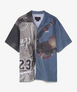 Esta camiseta de la marca Jordan está confeccionada con malla de fibra poliéster reciclado que capilariza el sudor y cuenta estampados vintage de MJ, cierre frontal de cinco botones y cuello camisero.