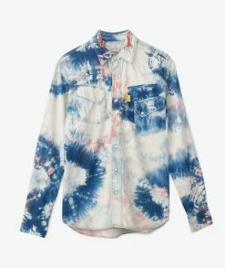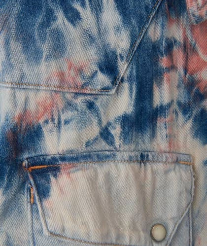 Esta camisa de denim es una pieza exclusiva de KAPITAL, diseñada con un refrescante patrón tie-dye de color azul y rosa. Está detallada con costuras artesanales, así como con pequeñas etiquetas que hacen parte de la iconografía de la marca.