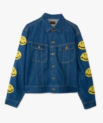 Inspirada en las prendas de los años 60, esta chaqueta vaquera de KAPITAL está diseñada con una silueta ‘boxy’ de estilo retro y un denim japones de primera calidad. Viene bordada en las mangas con una divertida secuencia de ‘smileys’.