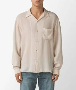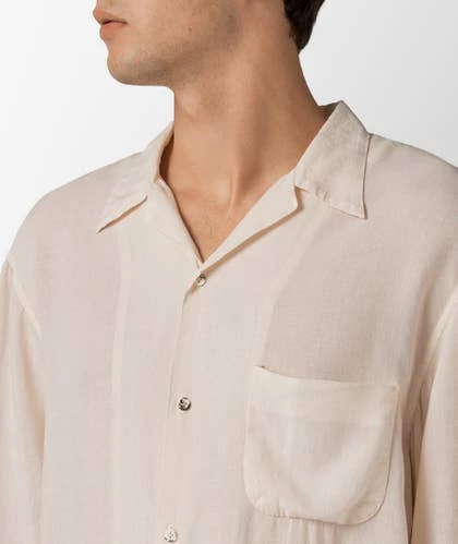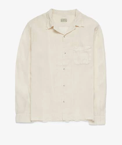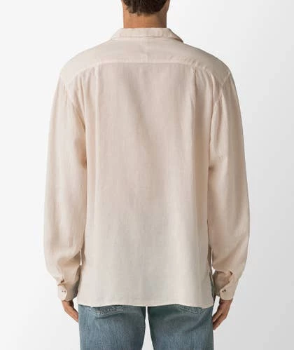 Esta camisa de cuello abierto se diseñó con una confortable silueta y fue confeccionada en una suave mezcla de lino. Presenta botones de estilo clásico y un bolsillo sobre el pecho.