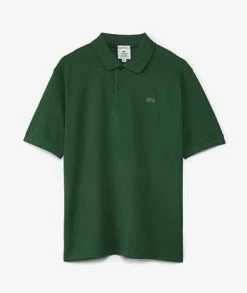 Polo unisex de LACOSTE confeccionado en piqué de algodón verde con un corte holgado, terminaciones en canalé y una tapeta frontal con cierre de botones. Incluye el tradicional cocodrilo de la marca sobre el lado izquierdo del pecho.