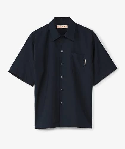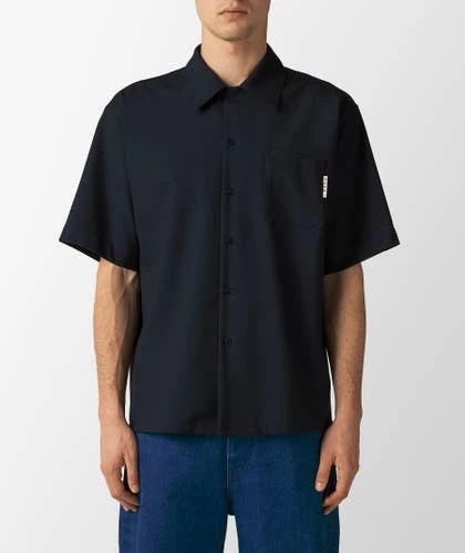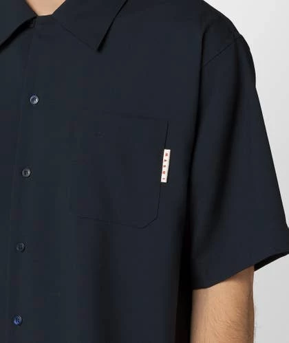 Esta camisa azul oscuro de bolos de Marni tiene un bolsillo en el pecho con una etiqueta de la marca de satén, un canesú recto en la espalda y cierre de botones.