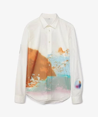 Esta camisa de manga larga con estampado pixelado tipo tie-dye forma parte de Breathe, el Icon N.º7 de MCQ, una colección permanente de prendas esenciales desarrollada con materiales sostenibles, tonos neutros y elementos funcionales.