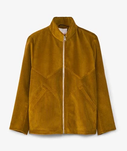 Chaqueta de pana de Paria Farzaneh con cierre de cremallera, dos bolsillos laterales y un tejido cuidadosamente cortado en distintas direcciones para conseguir un efecto brillante.