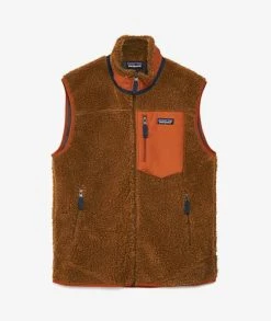 Este chaleco de Patagonia está confeccionado con vellón sherpa 100 % poliéster (50 % reciclado) con una membrana cortavientos adherida para mantener el calor en condiciones de frío y viento. Presenta tres bolsillos con cremallera, un cierre completo de cremallera, un cuello alto y cuenta con el sello Fair Trade Certified™.