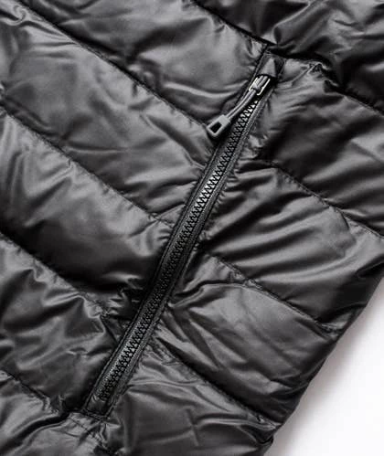 El exterior de la prenda proviene de poliéster reciclado que forma un resistente y aislante tejido ripstopcon acabado DWR que repele el agua e incrementa la durabilidad.