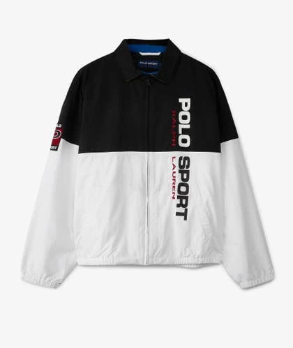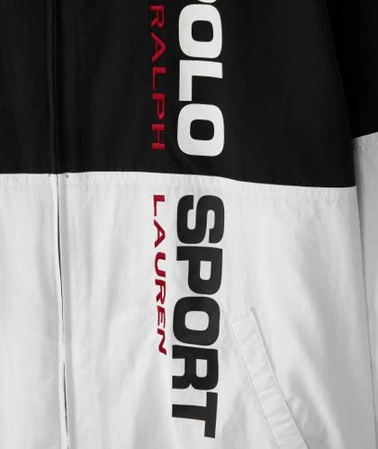 Esta chaqueta con bloques de color de Polo Ralph Lauren de nailon luce un logotipo «Polo Sport Ralph Lauren» estampado en goma a lo largo de la parte delantera izquierda. Cuenta con dos bolsillos, cierre de cremallera completa en la parte delantera y manga larga con puños elásticos.