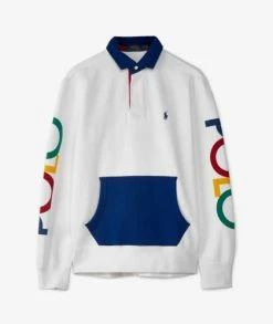 Este polo de manga larga adquiere un look retro gracias a su logo Polo de los años 90 estampado en cada manga. Cuenta con un bolsillo canguro contrastante, un cuello de solapas y el logo del caballo de Ralph Lauren.