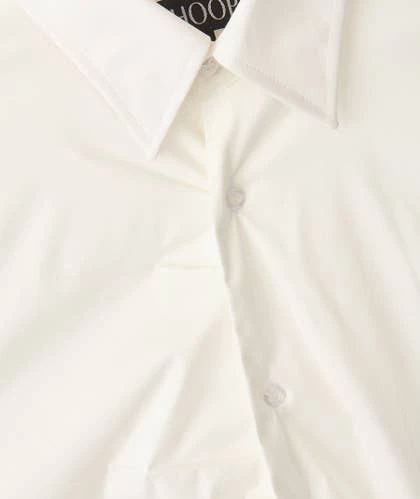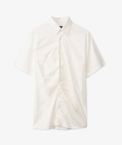 Camisa de manga corta diseñada con pliegues asimetricos en la parte frontal. Confeccionada con un algodón premium de color blanco.