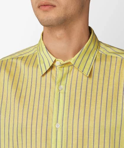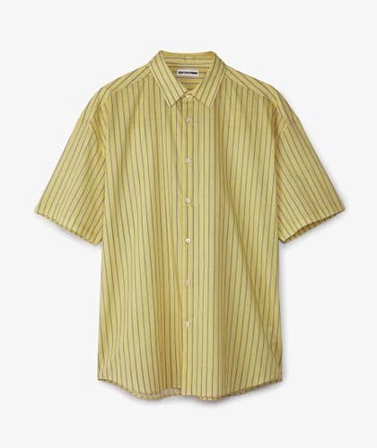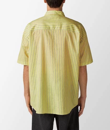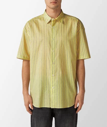 Camisa amarilla de rayas de SOFTHYPHEN, realizada con una mezcla de algodón y lino.