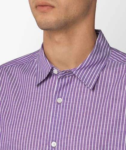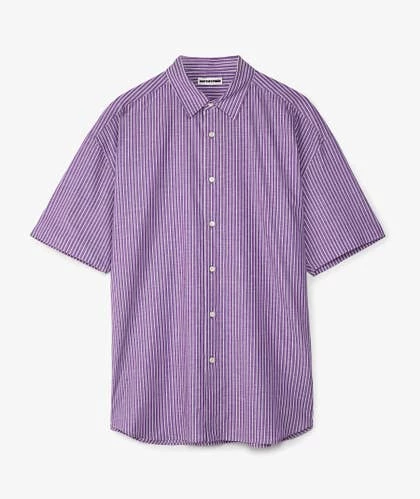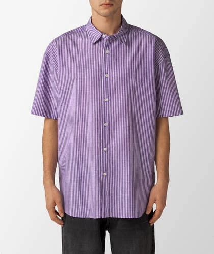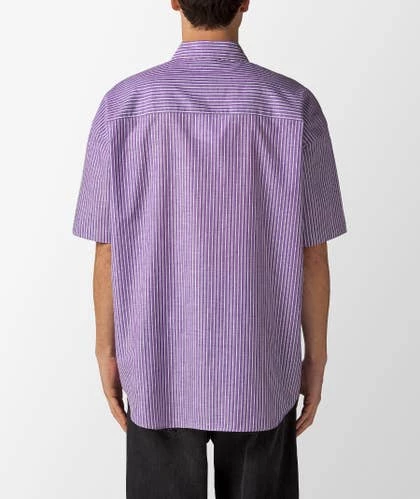 Camisa lila de rayas de SOFTHYPHEN, realizada con una mezcla de algodón y lino.