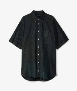 Tintada en frío a negro dejando entrever la raya original. Estampada en prenda con las letras en esténcil «MNTLR X SVD OBSCURED».