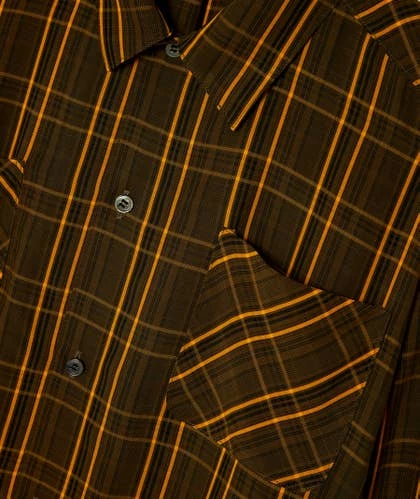 Camisa de cuadros de Undercover con panel negro en la parte inferior. Confeccionada en mezcla de rayón, cuenta con un cierre de botones y dos bolsillos frontales.