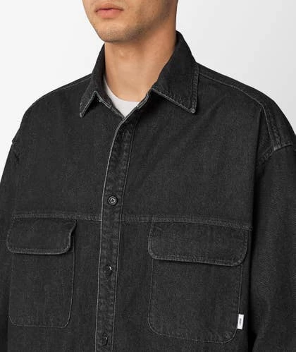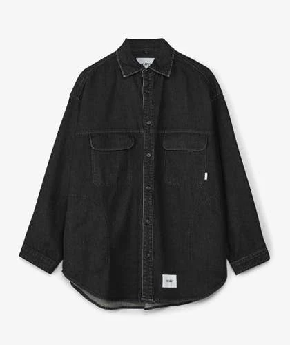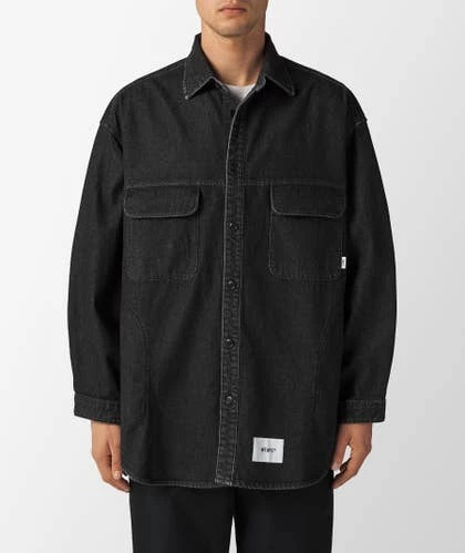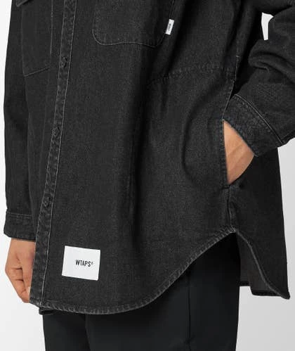 Sobrecamisa de denim de WTAPS. Presenta una silueta holgada, dos bolsillos de parche con solapa, dos bolsillos laterales, bajo redondeado y cierre de botones.